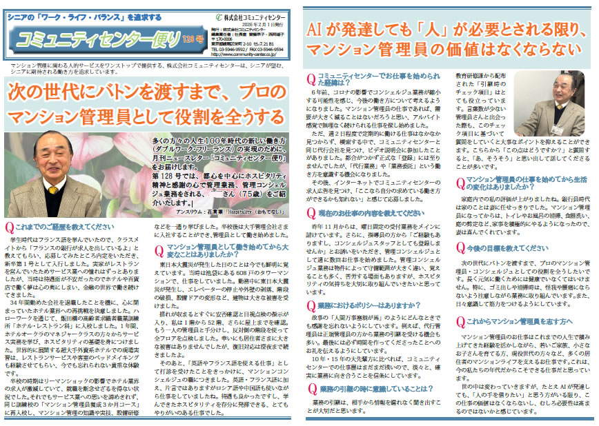 2026.2.1 CC便り128号:次の世代にバトンを渡すまで、プロのマンション管理員として役割を全うする